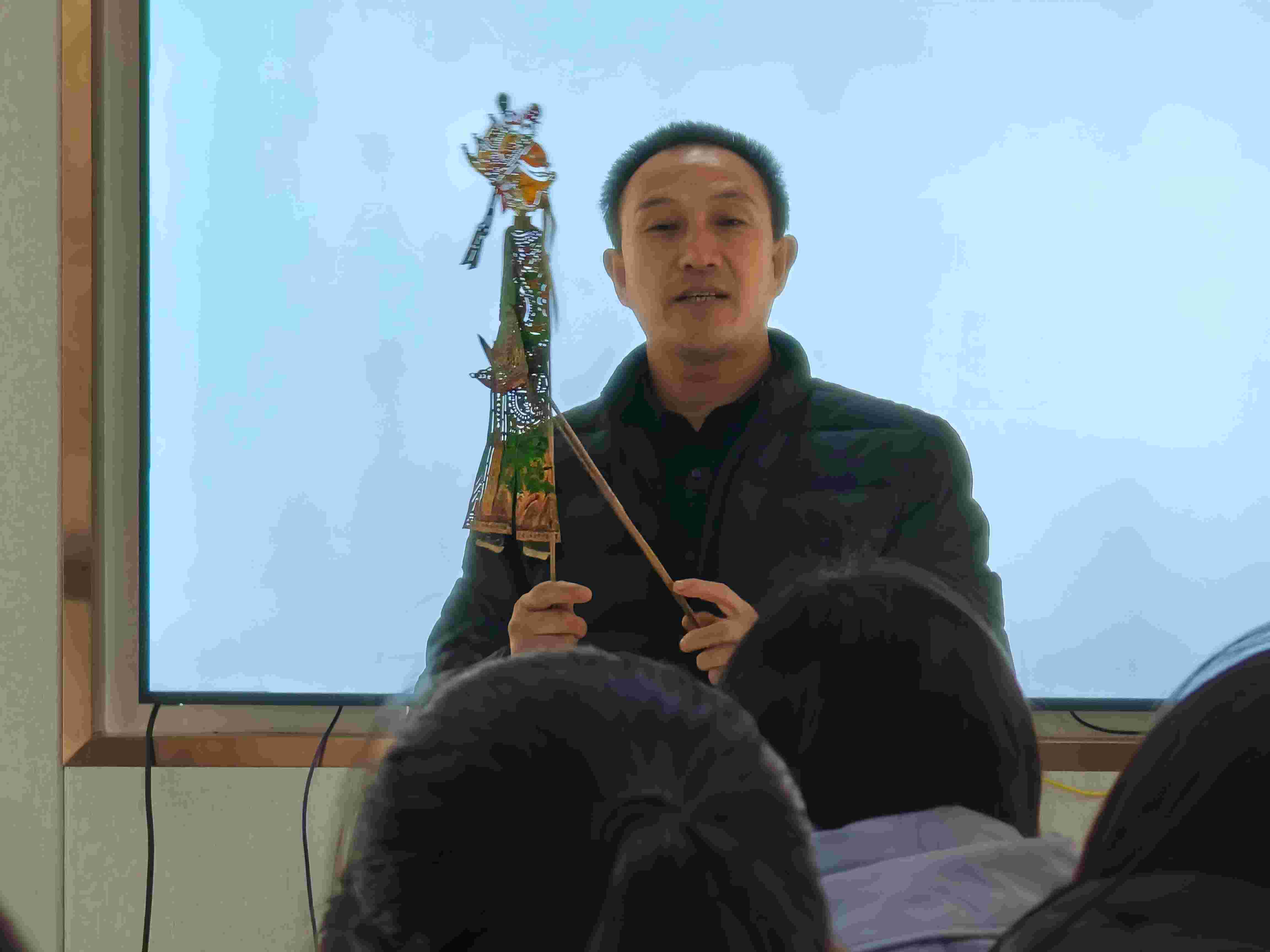 圖為非遺老師向志愿者講解皮影戲