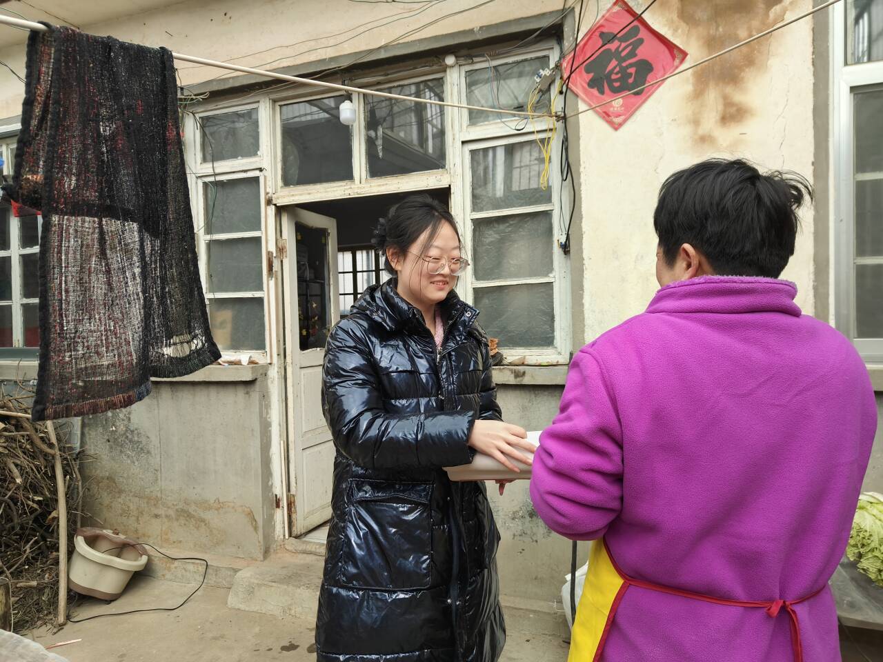 寫好春聯后,實踐隊員們帶著這些飽含祝福的春聯,走村串戶,為村民們送去新春的問候。一路上,冬日的暖陽灑在身上,溫暖而愜意。每到一戶,村民們都熱情相迎,臉上洋溢著喜悅的笑容。當實踐隊員將一幅幅嶄新的春聯遞到村民手中時,他們紛紛連聲道謝。
