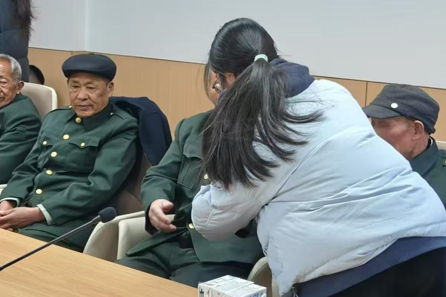 2025年1月15日下午,團隊成員們懷著無比崇敬的心情,前往金寨縣光榮院,看望七名退伍老兵。在黃立主任的引導下,成員們來到光榮院的會議室,與老兵們親切的交談,聆聽他們講述革命戰爭年代的崢嶸歲月和感人故事。團隊成員們被老兵們身上體現出的不怕犧牲、英勇頑強的革命精神所深深感染,他們感受到了革命前輩們堅定的信仰、無私的奉獻以及為了國家和民族利益而勇往直前的決心,這種精神力量讓團隊成員們深受鼓舞,更加堅定了他們傳承紅色基因、擔當時代責任的信念。交談結束后,團隊成員們還為七位老兵送上了精心準備的慰問品,并致以崇高的敬意和誠摯的祝福,感謝他們為國家和民族做出的巨大貢獻。老兵們對團隊的到來表示熱烈歡迎,并勉勵他們珍惜來之不易的幸福生活,努力學習,報效祖國。