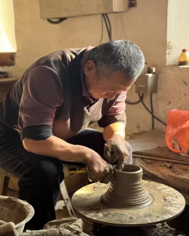 隨后前往安莊村,拜訪資深黑陶藝人,了解黑陶歷史淵源、家族傳承及村落發展現狀。參與制作工作坊,體驗拉坯、刻花等環節,向藝人請教技巧,對比安莊村與毓窯黑陶在裝飾、造型等方面差異,挖掘地域文化因素。并組織村民座談會,邀請了不同年齡段村民,了解對黑陶文化傳承發展看法建議,關注年輕一代參與意愿。