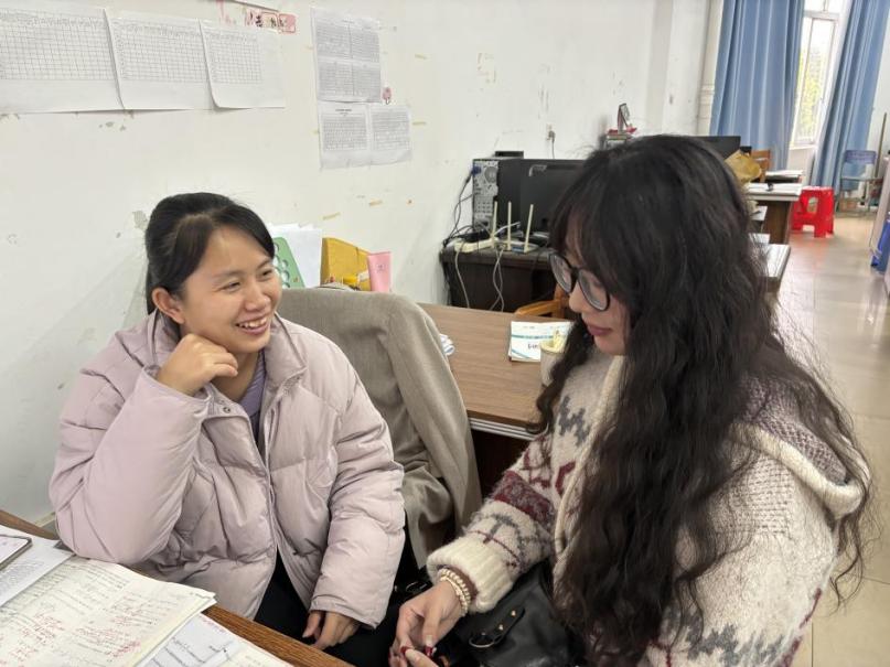 圖為團隊成員與優秀教師進行交流。包紫櫻 供圖