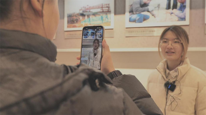 圖為實踐團隊員直播云游沈浩紀念館。胡文 供圖