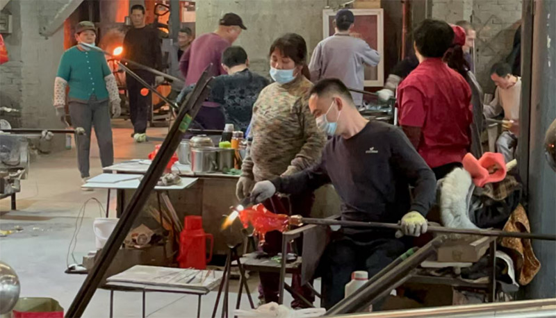 在園區工作人員的帶領下,實踐隊成員們深入了解了琉璃的制作工藝與歷史沿革。從原料的選取、熔煉、吹制到后期的雕琢、上色,每一道工序都凝聚著匠人的智慧與汗水。匠人們以火為筆,以琉璃為墨,在熾熱的火焰中勾勒出一幅幅生動的畫面,講述著古老而又鮮活的故事。在參觀過程中,成員們被一位正在吹制琉璃的老師傅深深吸引。他手法嫻熟,神情專注,仿佛在與琉璃進行一場無聲的對話。實踐隊成員小宋忍不住上前請教,老師傅耐心地為她講解了吹制琉璃的技巧與要點。小宋在老師傅的指導下,小心翼翼地嘗試著吹制了一個簡單的琉璃小球,雖然形狀不太規整,但那份成就感卻讓他興奮不已。隨后,實踐隊成員們有幸參與了一場琉璃制作體驗活動。在匠人的指導下,大家小心翼翼地嘗試著吹制琉璃,雖然手法生疏,但那份對傳統文化的熱愛與敬畏卻溢于言表。通過親身體驗,成員們更加深刻地感受到了琉璃藝術的魅力與非物質文化遺產傳承的重要性。