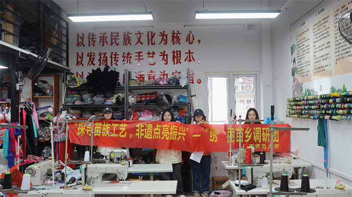 當今世界,文化戰(zhàn)役已然打響,中華兒女勤勞勇敢,孕育了璀璨的民族文化。為進一步貫徹文化自信思想,探究鄉(xiāng)村振興與民族文化的相互作用,廣西師范大學“繡”麗苗鄉(xiāng)調(diào)研團于1月21日前往柳州市融水苗族自治縣苗家小鎮(zhèn)社區(qū)彩云苗藝非物質(zhì)文化遺產(chǎn)傳習基地開展為期一天的走訪調(diào)研活動。此次活動,形式豐富,理論知識傳授與實踐參與結(jié)合,無論對團隊成員的苗繡文化灌輸,還是此次項目的研究價值,都具有重大的作用。