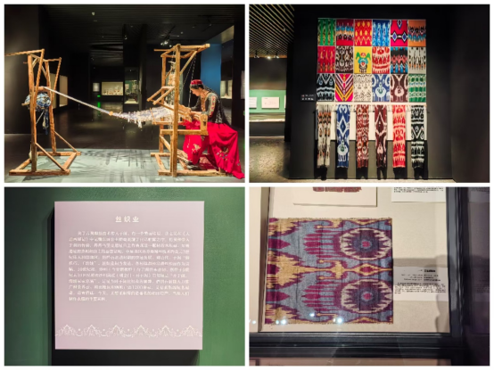 觸摸歷史的脈搏 1月20日上午,小隊首先來到和田市博物館。和田博物館作為新疆地區重要的文化傳承場所,展示了和田地區豐富的藝術珍藏與深厚的文化底蘊。館內詳細地記錄了和田地區紡織業、毛織業、棉織業以及絲織業的發展演變過程,其中陳列的艾德萊斯綢更是作為新疆非物質文化遺產,展現了其獨特的織造工藝與深刻的文化內涵,這種絲綢以其特殊的扎染技藝和絢麗的色彩聞名,在千余年的傳承中已經成為了維吾爾族傳統手工藝的瑰寶。在展品中游覽的小隊成員們也深受啟發,艾德萊斯綢不僅是一種織物,更是歷史的見證和藝術的結晶。