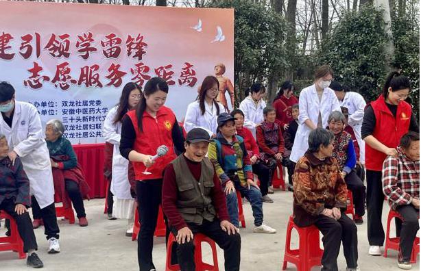 為弘揚新時代雷鋒精神,踐行青年社會責任,3月23日,社居雙龍委聯合安徽中醫藥大學志愿者團隊共同開展"黨建引領學雷鋒,志愿服務零距離"主題活動,將傳統中醫推拿技藝和養生知識送入雙龍社區,為居民帶來了一場別開生面的健康服務體驗。