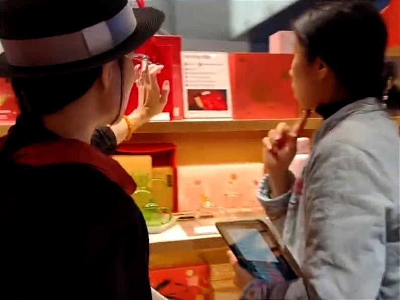 圖1 山水道大創(chuàng)課題團(tuán)隊(duì)正在觀察商場(chǎng)的商業(yè)環(huán)境一、空間革新:從傳統(tǒng)茶館到“第三空間”美學(xué)重塑 調(diào)研發(fā)現(xiàn),tea'stone通過(guò)場(chǎng)景化空間設(shè)計(jì)打破傳統(tǒng)茶館的刻板印象。該店摒棄了傳統(tǒng)茶飲店的單一模式,通過(guò)獨(dú)特的空間設(shè)計(jì)營(yíng)造出多元化的氛圍。店內(nèi)劃分了不同的區(qū)域,有適合商務(wù)洽談的安靜角落,也有充滿活力的社交空間。同時(shí),巧妙地融入了茶文化元素,如精美的茶具展示、茶文化壁畫(huà)等,讓顧客在享受茶飲的同時(shí),感受到濃厚的文化氣息。這種創(chuàng)新的空間設(shè)計(jì)吸引了不同類型的顧客,提高了門(mén)店的吸引力和競(jìng)爭(zhēng)力,以現(xiàn)代極簡(jiǎn)風(fēng)格融合茶文化元素,如定制茶器展示墻、沉浸式茶席體驗(yàn)區(qū)等,構(gòu)建兼具社交屬性與文化質(zhì)感的美學(xué)空間。團(tuán)隊(duì)觀察到,門(mén)店通過(guò)“茶飲+零售+體驗(yàn)”復(fù)合業(yè)態(tài),吸引年輕消費(fèi)者駐足打卡,通過(guò)查詢網(wǎng)絡(luò)資料發(fā)現(xiàn),日均客流量達(dá)300人次以上,復(fù)購(gòu)率達(dá)40%,印證了“第三空間”模式對(duì)傳統(tǒng)茶飲場(chǎng)景的升級(jí)價(jià)值。