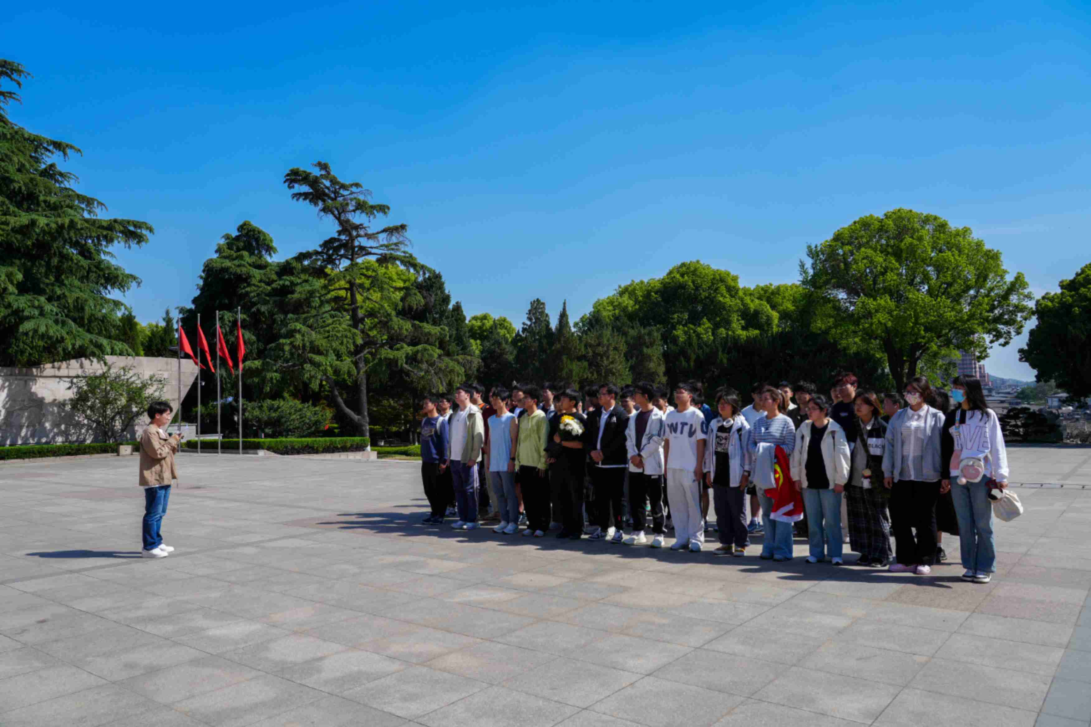 4月25日下午2時,全體同學乘坐大巴前往至鎮江烈士陵園,到達之后在莊嚴肅穆的烈士紀念碑前整齊列隊。活動拉開序幕,在團支書王凱文進行莊嚴的致辭后,全體同學向烈士紀念碑敬獻花束,全體人員默哀一分鐘,深切悼念為民族獨立、人民解放和國家富強獻出生命的革命先烈。