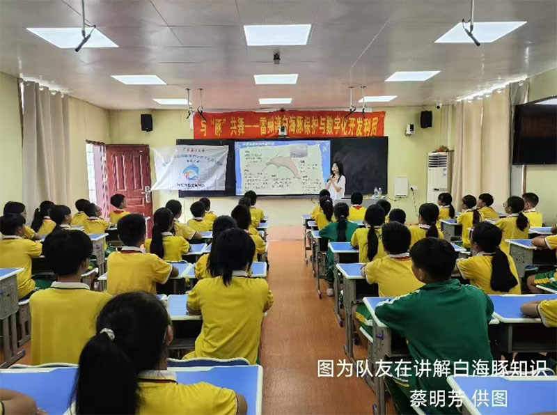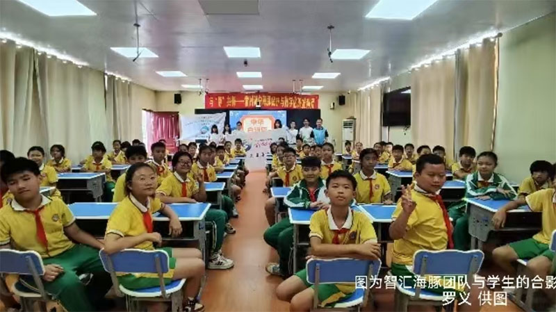 6月4日,陽光透過課室窗戶灑在課桌上,一群“白馬甲”的身影出現(xiàn)在硇洲小學(xué)——與“豚”共舞團(tuán)隊(duì)帶著特別的禮物,來赴一場(chǎng)和孩子們的“海豚之約”。當(dāng)科普課堂遇見童真笑臉,當(dāng)海洋保護(hù)融入趣味互動(dòng),這個(gè)夏日的課室,悄然種下了守護(hù)生態(tài)的種子。