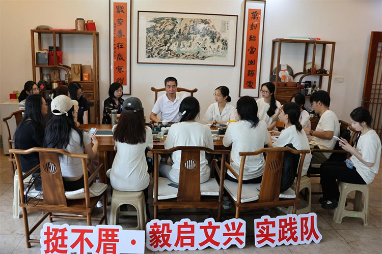 圖為“毅啟文興”實踐隊員與制香傳承人蘇介的訪談交流場景
