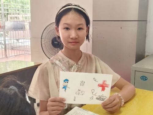 在志愿者的指導(dǎo)下,一幅幅充滿童趣又飽含深意的畫作逐漸完成。有的畫作中,紅十字旗幟迎風(fēng)飄揚;有的描繪了醫(yī)護(hù)人員救治傷員的場景;還有的將紅十字與向日葵結(jié)合,表達(dá)對生命希望的向往。活動最后,孩子們自豪地展示自己的作品,臉上洋溢著創(chuàng)作的喜悅。