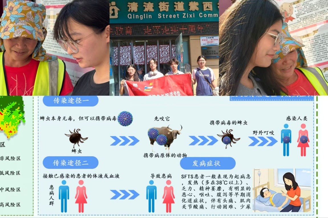 2025年1月1日上午,滁州學院地理信息與旅游學院的大學生志愿者走進滁州市南譙區紫薇社區,開展以"預防蜱蟲叮咬,守護健康安全"為主題的科普宣傳活動,向社區居民普及蜱蟲可能導致的發熱伴血小板減少綜合征(SFTS)相關知識,提升公眾防范