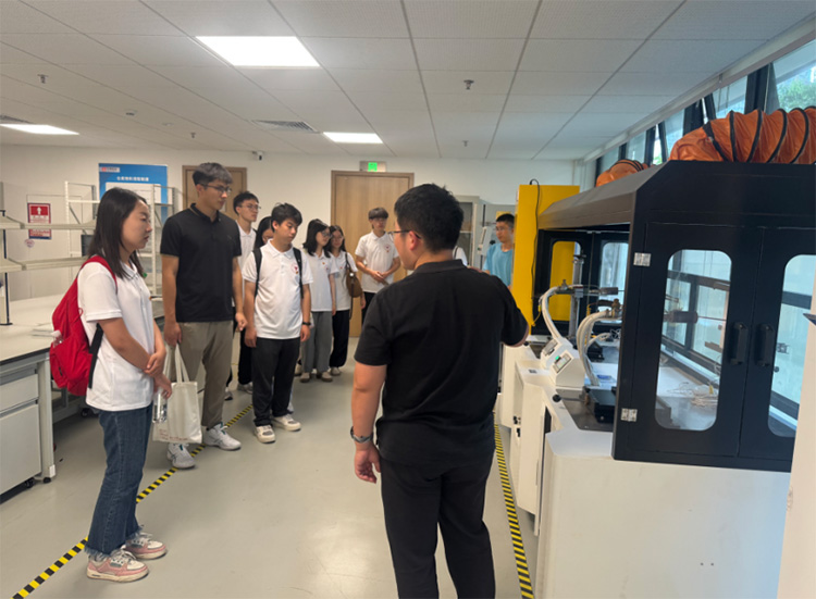 04走進企業研究一線,賦能行業生產實踐 在深圳實踐團的學習過程中,成員們來到中建海龍建筑科技研究院國家級重點實驗室,進行了一次關于建筑科技創新的實地考察。在實驗室內,來自不同領域的博士與科研人員為實踐團成員們提供了詳細的講解,介紹了中建海龍在建筑材料領域的最新科研成果,尤其是再生混凝土、綠色建材和防火建材等創新材料的應用與發展。