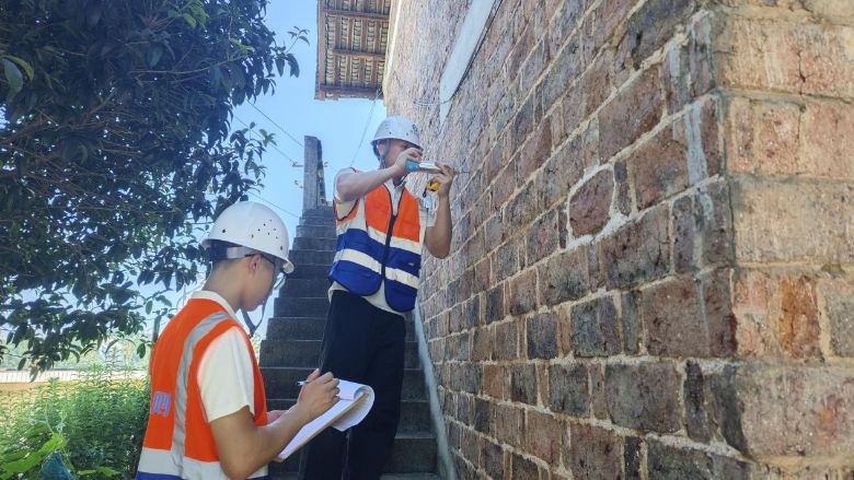 完成新建房檢測后,團隊轉至既有農房區域。對70年代磚房的強度測試顯示,雖經歷數十年風化,部分墻體強度仍保持安全閾值。團隊同步建立"一房一檔"電子臺賬,精準記錄房屋結構信息,為后續加固改造提供科學依據。