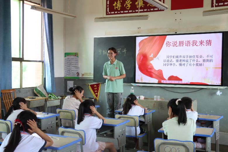 為了讓孩子們更真切的理解巾幗先鋒們的精神,志愿者結合孩子們的生活實際提問:“如果每天要走山路兩小時去上學,你們還能堅持讀書嗎?”“當遇到聽不清聲音的困難,怎樣才能像江夢南姐姐一樣不放棄?”一個個貼近生活的問題,引發孩子們的深入思考,明白了“先天條件或許無法改變,但奮斗能突破困境”的真理。