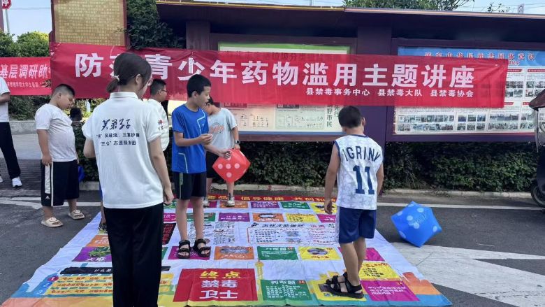 活動伊始,志愿者們便以禁毒宣傳為切入點,為孩子們上了一堂生動而深刻的課程。他們創新性地引入了禁毒飛行棋這一游戲形式,讓孩子們在輕松愉快的氛圍中認識毒品的危害,樹立遠離毒品的意識。孩子們在棋盤上跳躍、思考,不僅學到了禁毒知識,更在心中種下了自我保護的種子。
