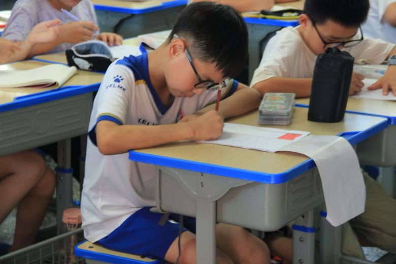 圖為作業(yè)輔導(dǎo)時(shí)同學(xué)們認(rèn)真寫(xiě)作業(yè)。多彩大學(xué)生網(wǎng)通訊員王文秀攝