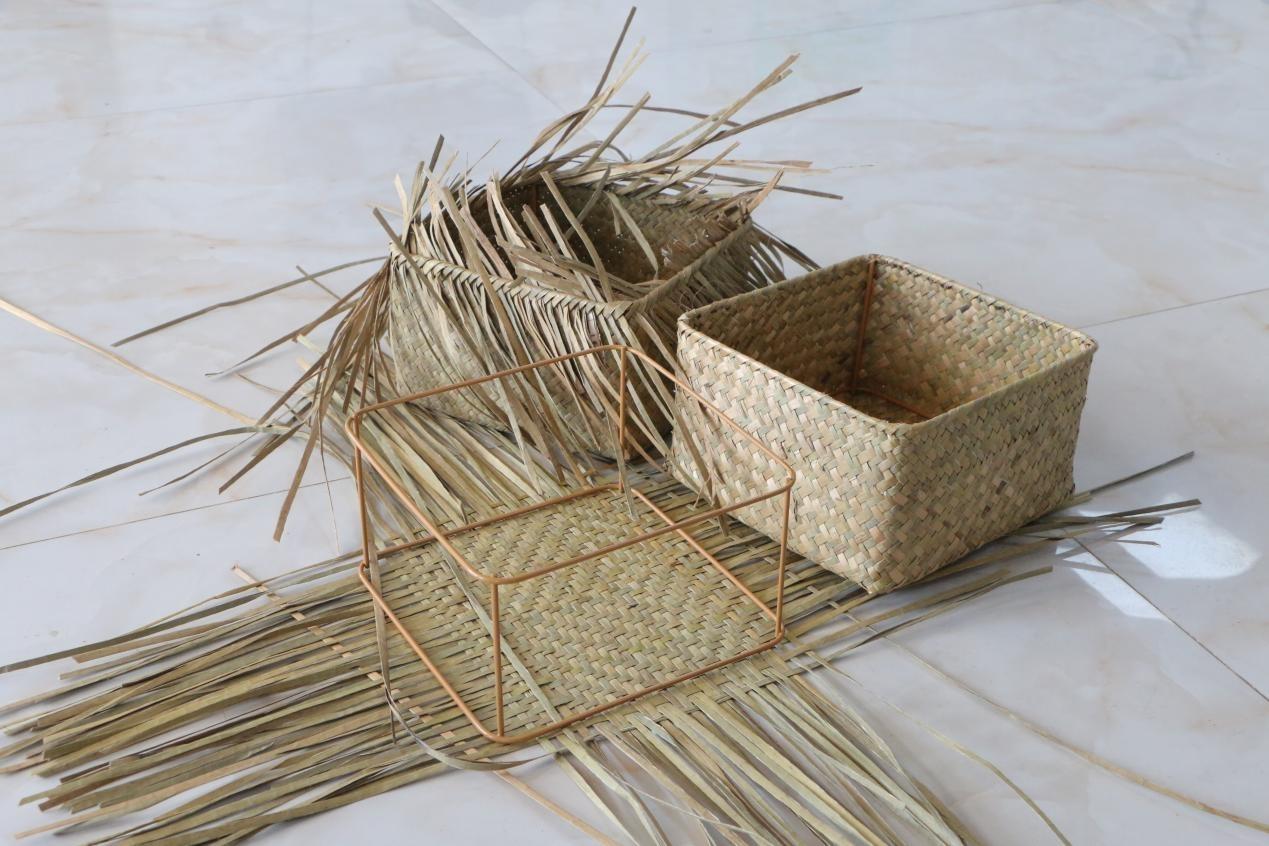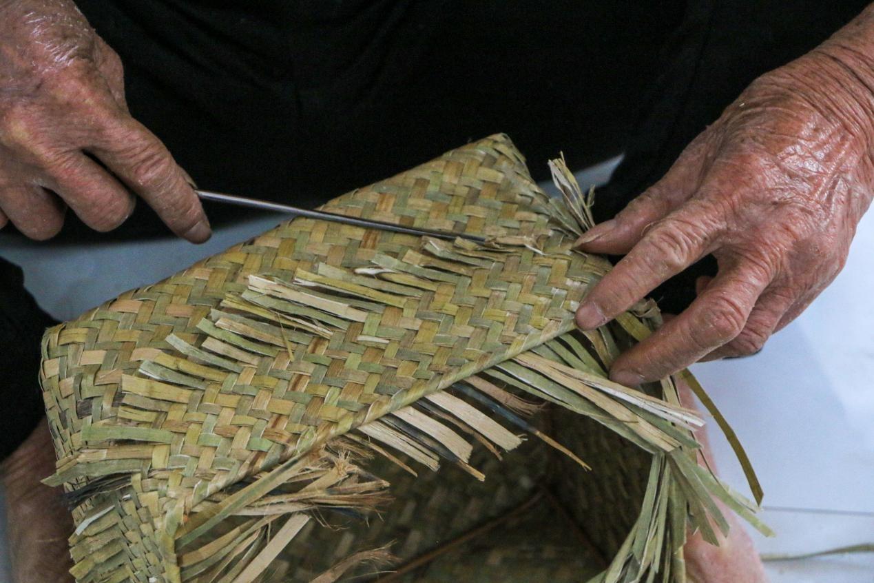 結(jié)實(shí)耐用;編至換色或復(fù)雜紋樣處,他們眼神專注,手指靈活調(diào)整草的走向,千鳥紋的