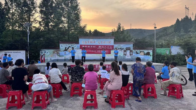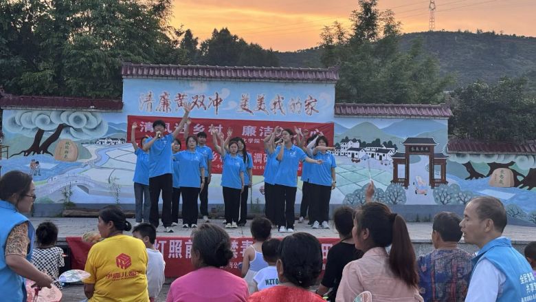 “文藝為橋,法理入人心”。晚會在法治快板的清脆節奏中開場,鏗鏘的快板聲在抑揚頓挫的節奏中帶領村民感悟法律知識的魅力。普法三句半緊隨其后,以生動有趣的方式為村民們點出日常生活中所需要警惕的法律“雷區”;“‘雞’鳴法醒,小品釋疑”。“三公”志愿服務團從晾曬被單與家禽越界故事線展開,通過極具鄉土氣息的表演還原村民們日常生活中常見的鄰里糾紛,將《民法典》中關于相鄰關系與土地承包經營權的抽象規定,演繹成村民眼中鮮活的“身邊事”;“‘誦’法下鄉,法在我心間”。“普法學法,知法守法,和風細雨大時代,一路風景一路歌”志愿者鏗鏘有力的聲音回蕩在廣場上空,法律的莊嚴與神圣在村民的內心里種下了敬畏與希望的星芒;“童聲護安,知識問答燃激情”。熟悉的《童年》旋律被賦予防溺水安全教育新詞由服務團成員與村童們共同唱響,清澈的童聲承載著的是珍愛生命的鄭重承諾。晚會還穿插法律知識有獎競答環節,問答題目緊扣節目中所涉及的法律知識,村民們踴躍舉手搶答,法治的氣息在歡聲笑語間繾綣蔓延。