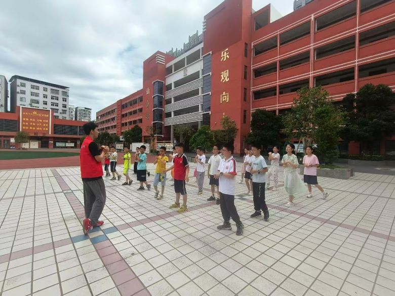 體育課上,孩子們跟著志愿者慢跑熱身,雖滿頭大汗仍堅持到底。自由活動時,操場成了歡樂海洋,跳繩、踢毽子、打羽毛球,銀鈴般的笑聲灑滿校園。隨后進行的“貼膏藥”游戲中,孩子們圍成圓圈,兩人在圈內追逐,被追上者立刻站到圈上,另一人繼續。奔跑與歡笑中,團隊協作意識悄然萌芽。