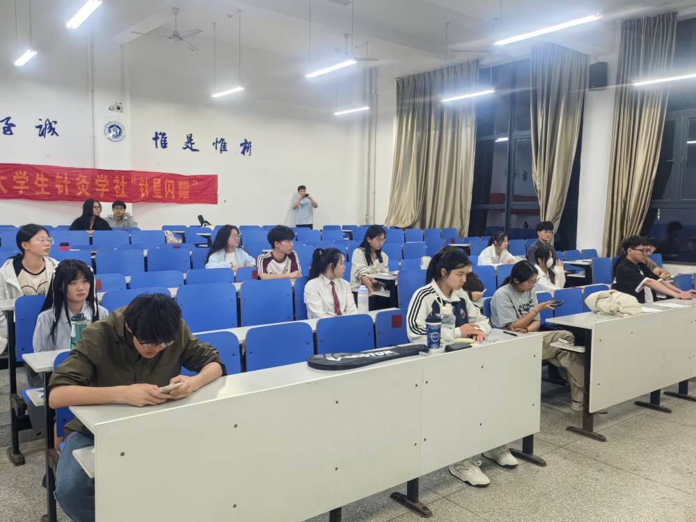 大學生針灸學社社長劉芳介紹,本次大賽籌備歷時兩個多月,初賽階段就吸引了全校300余名學生報名參加。比賽內容涵蓋《黃帝內經》《傷寒論》等中醫經典理論,以及經絡腧穴、針灸手法等實踐知識,全面考察選手的中醫理論素養和臨床應用能力。