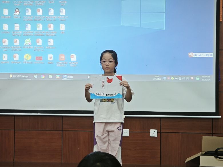 課間休息后,迎來了激動人心的作品展示環節。孩子們手捧畫作,依次走上講臺,自信滿滿地介紹自己船舶的構造與設計理念。有的同學將船作為學校的投射,彰顯出對學習生活的熱愛與向往;有的同學以美好幻想為基,繪制出星空遨游艦;還有同學以“中國夢”為旗幟,讓船只“向著陽光,揚帆起航”,滿懷對祖國發展的信心。臺下掌聲雷動,團隊成員和老師們也為孩子們的奇思妙想贊嘆不已。這一環節不僅鍛煉了孩子們的表達能力,更增強了他們的自信心,讓藝術的種子在心中生根發芽。