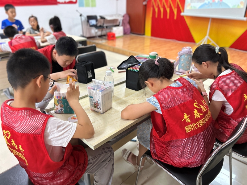 活動尾聲,實踐隊協助社區工作人員開展助老志愿服務主題冰箱貼制作活動,并為孩子們提供指導。現場充滿歡聲笑語,孩子們制作的冰箱貼上印有小紅心,象征著生命之光,點亮了他們的快樂與想象。
