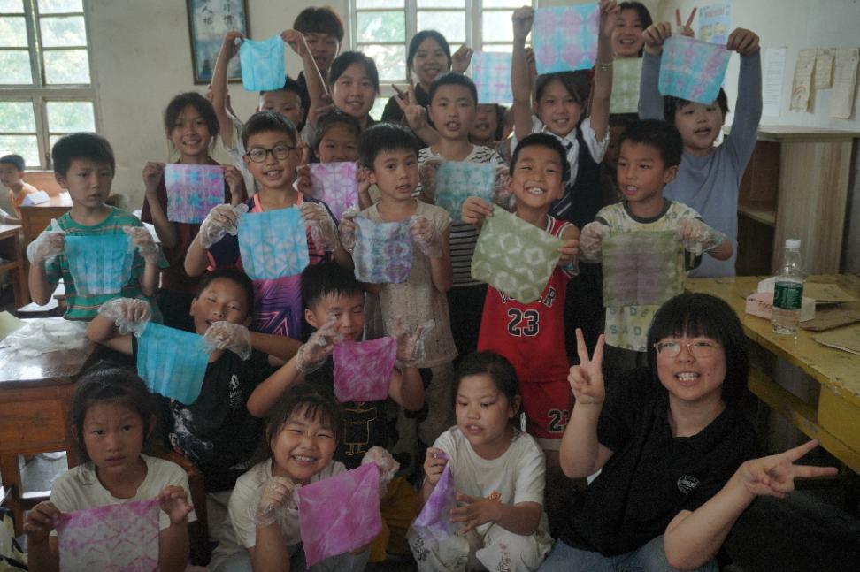 湖南第一師范學院外國語學院“紅途礪心 惠民篤行”鄉村振興促進團在安化縣實踐基地開展了一場以“非遺文化進課堂,扎染技藝潤童心”為主題的非遺文化傳承活動。實踐團成員帶領學生們親身體驗扎染技藝,通過動手實踐感受非遺魅力。