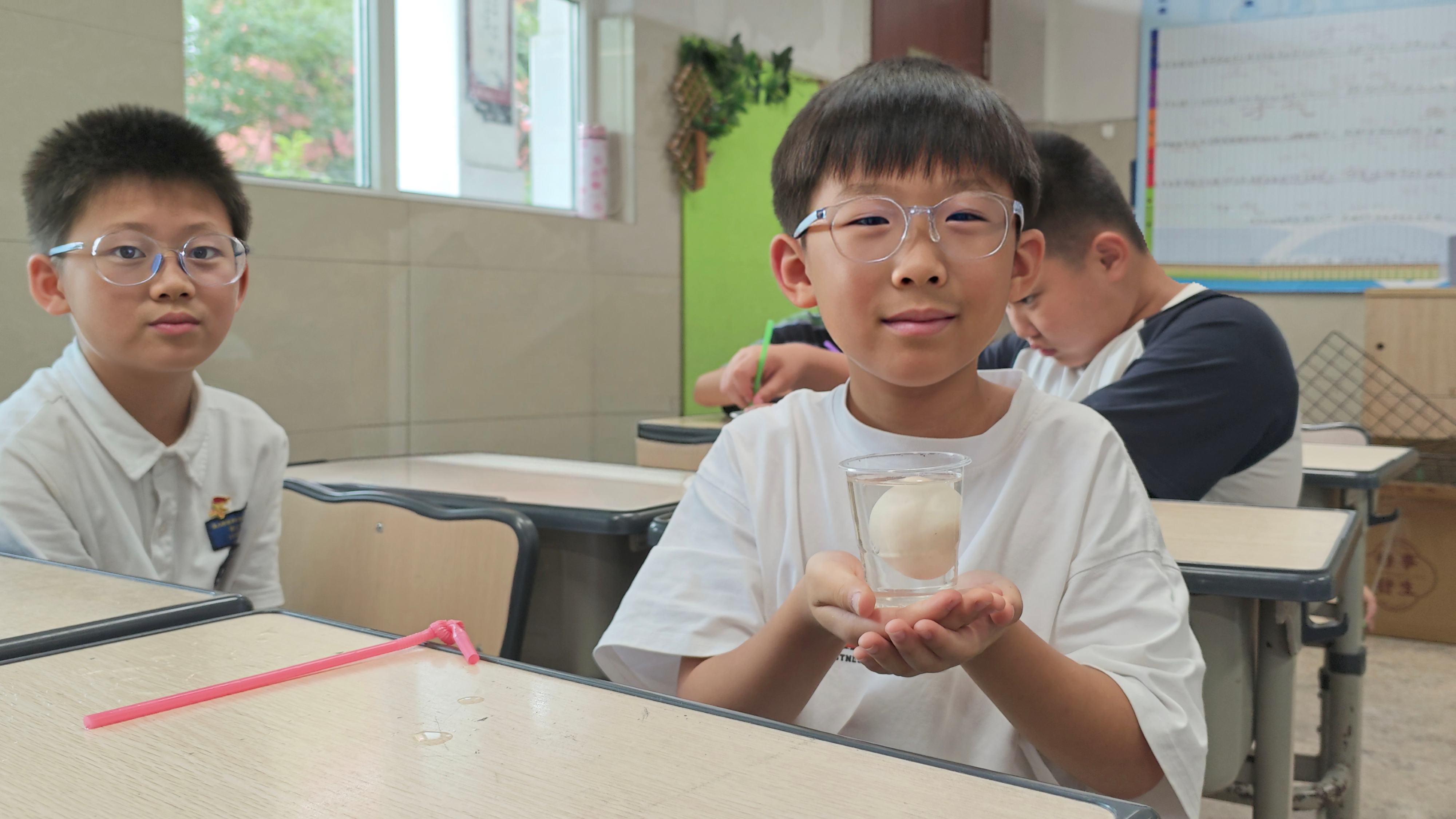 課程尾聲,楊老師留下幾個問題,如用糖代替鹽會怎樣、熟雞蛋和生雞蛋浮沉有無區別、其他蔬果能否用同樣方法浮起來。這些問題如科學種子播撒在孩子們心田。相信這堂實驗課讓南白象小學的孩子們收獲生活中豐富的化學知識,更點燃了對科學探索的熱情與向往。