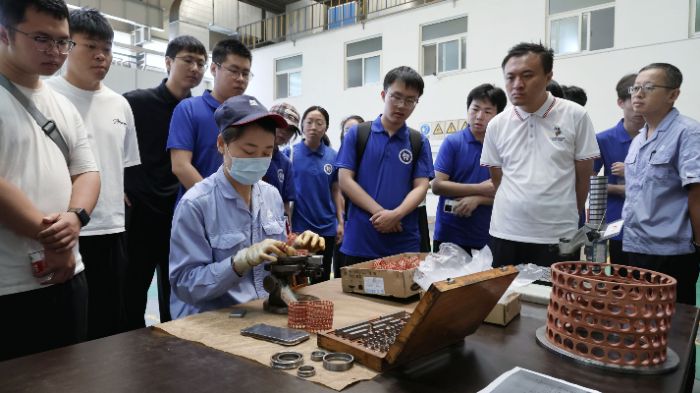 在主軸制造部技術與現場應用骨干王曉峰先生的引導下,大家參觀了主軸制造部車間,F代化的生產線、精密的加工設備以及工人們嚴謹的操作,都給師生們留下了深刻印象。