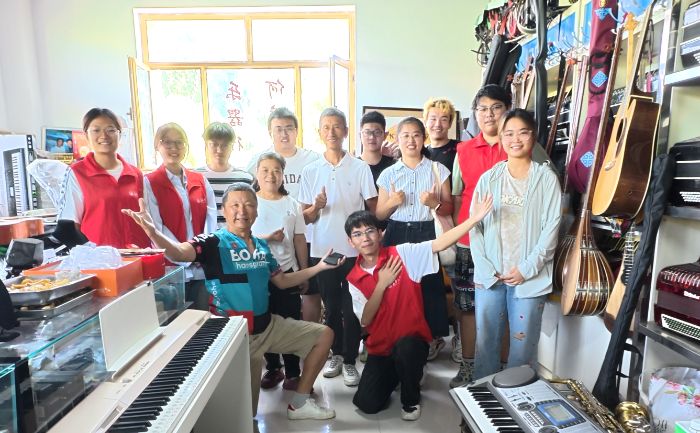 作為伊寧歷史悠久的商業街區,漢人街匯聚了漢族、維吾爾族、回族等多民族文化。學生們走訪老字號店鋪,在樂器行中,有滿墻懸掛的冬不拉,琳瑯滿目的手風琴應接不暇,每一架琴都承載著獨特的文化記憶。