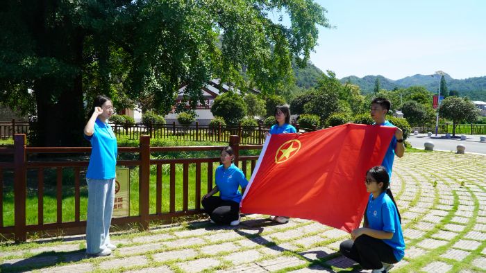 實(shí)踐的最后一站,隊(duì)員們來到何家沖的標(biāo)志性景觀——千年銀杏樹下。這棵歷經(jīng)千年風(fēng)雨的古樹,曾見證紅二十五軍將士的錚錚誓言。如今在樹下,實(shí)踐團(tuán)成員面向團(tuán)旗莊嚴(yán)列隊(duì),重溫入團(tuán)誓詞。“我志愿加入中國(guó)共產(chǎn)主義青年團(tuán)……”鏗鏘誓言如火焰般激蕩,驚起樹梢的群鳥。這既是對(duì)歷史的回應(yīng),更是對(duì)未來的承諾——“做紅色基因的傳承者、長(zhǎng)征精神的踐行者”。