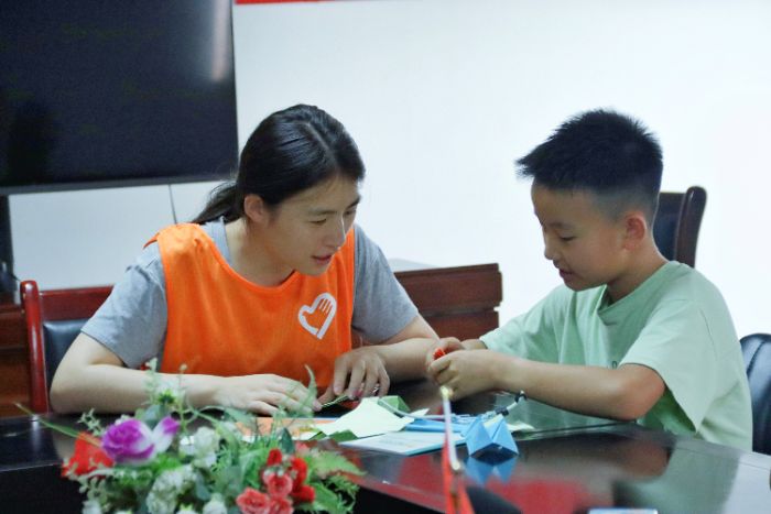 關愛“一小”:趣味教學賦能,播撒文明種子 在關愛青少年方面,志愿者們為社區小學生帶來了豐富多彩的活動。手工教學課上,志愿者耐心指導孩子們制作手工作品,孩子們充分發揮想象力,用彩紙、剪刀等工具制作出了一件件可愛的作品,課堂上充滿了歡聲笑語,不僅鍛煉了孩子們的動手能力,還培養了他們的創造力。