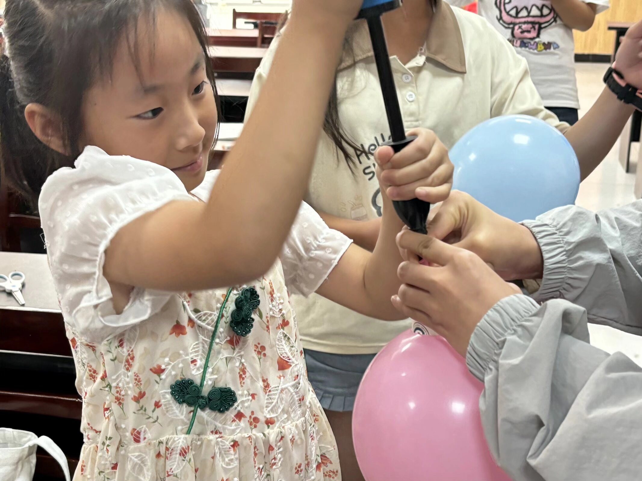 用彩帶和氣球來演繹靜電的力量。陳若寒 供圖