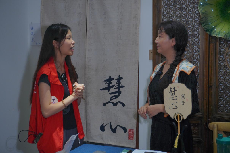 圖為實踐團成員采訪茶果子非遺傳承人慧心。李子睿 攝