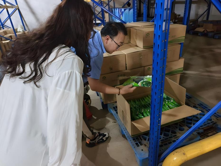 跟隨工作人員進入廠房,我們有幸在參觀區觀察工作人員的流水打包工作。海之寶廠房內的各項設施有機結合,打包速度與質量皆有很高水平。見我們如此驚訝,工作人員繼續補充道:“現在國家對我們海洋產業的發展十分看重,因此也給予了我們許多的創新科技支撐。正是因為榮成獨特的生態環境,造就了優良的海帶;也正是因為海洋科技的發展,更多的海洋加工品得以問世。”隨手拿起一包加工好的海帶產品,我們都可從其包裝及重量中感受到海之寶公司滿滿的誠意。