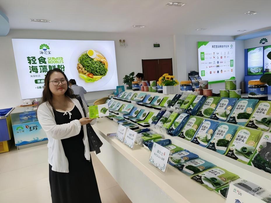 在工作人員的引導下,實踐隊了解到海之寶已開發 “海芝寶” 深海小海帶原生態產品、海帶面、即食休閑食品、鮮焙干品、禮品箱五大系列 50 余種特色產品,這些產品逐漸成為榮成人日常生活及送禮的必備之選。