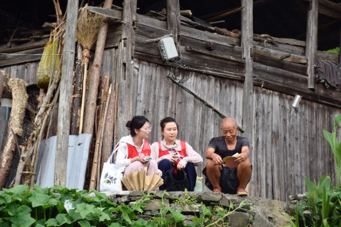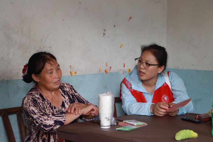 圖為實踐團成員給村民宣傳防詐騙知識 楊欣 供圖