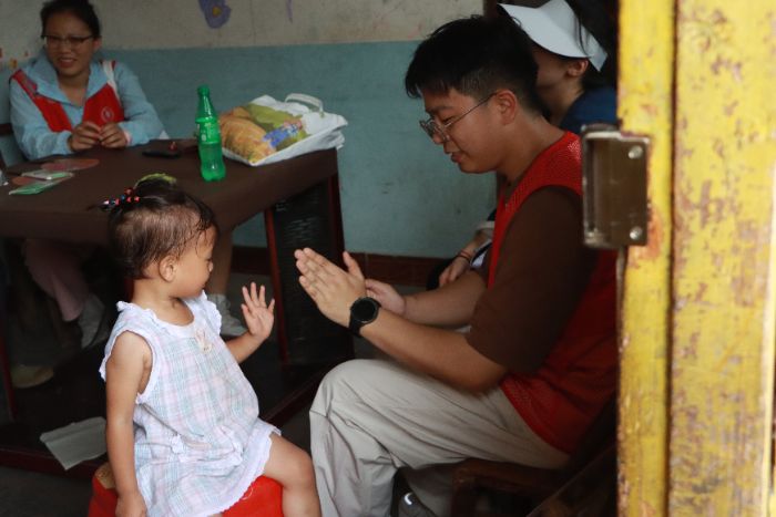 圖為實踐團成員與兒童做游戲 冷陳 供圖