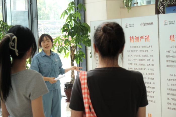 隨后,實踐隊來到現場中控室。調度室值班主任朱偉向隊員們全面介紹了公司的發展脈絡:從 1973 年國家計委批復建設,到 2024 年深入學習貫徹黨的二十屆三中全會精神,全面深化體制機制改革,川維化工有限公司已成為全國四大化纖基地之一,經過 50 多年的發展,如今已是國內最強最大的以天然氣為原料的特色精細化工和新材料企業。中控室兩側墻上 “堅持創新引領,實施‘一個基礎、四朵金花’發展戰略,奮力打造世界領先特色精細化工和新材料公司” 的口號,傳遞出企業的發展愿景與決心。訪談中,針對實踐隊隊長邱澤子俊提出的大學生就業問題,朱偉主任給出了懇切解答:“公司在招聘時,更加看重應聘者的學習能力和為人品質。”