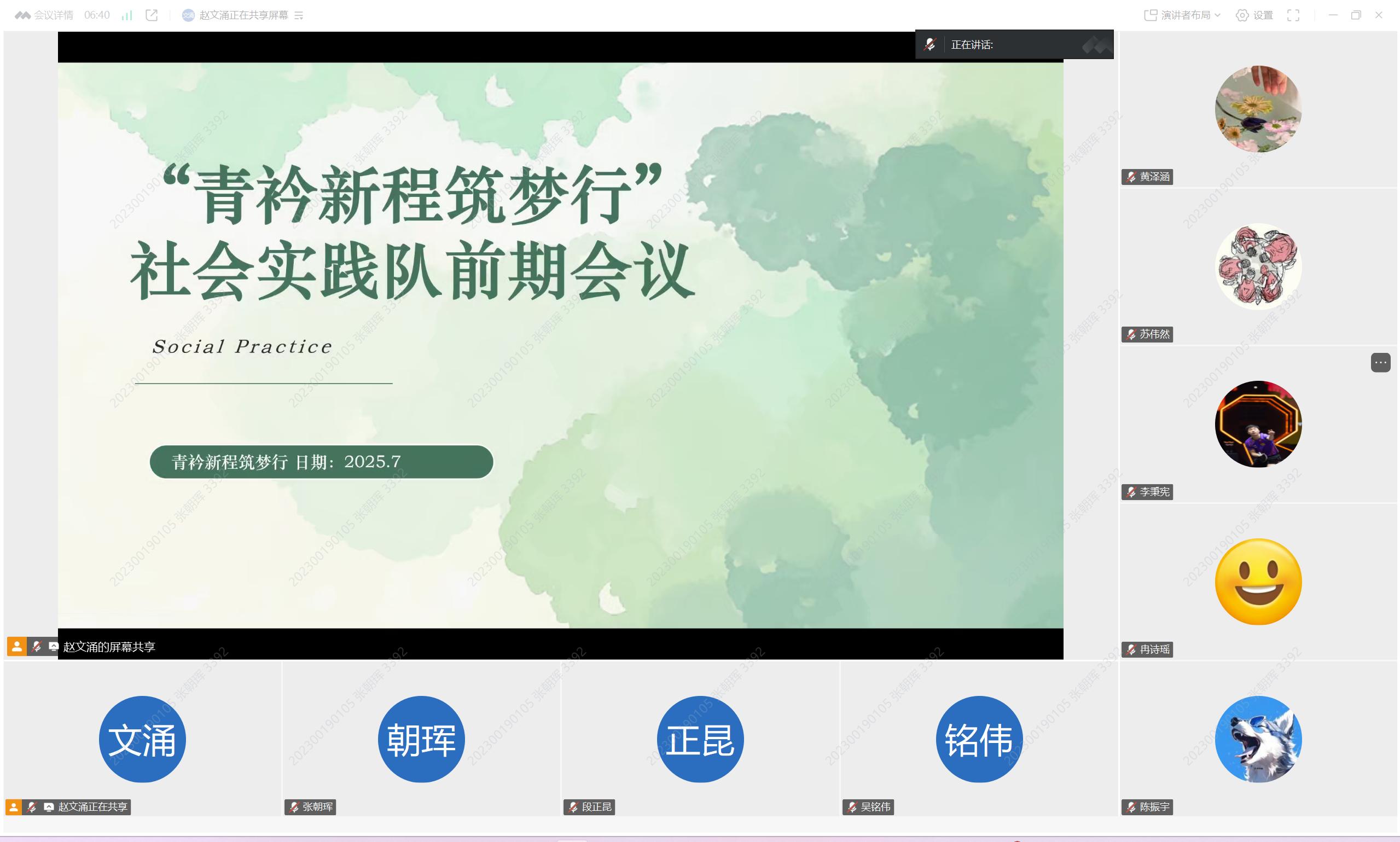 首先,趙文涌對此次實踐活動的時間和地點進行了詳細介紹。活動時間定在2025年7月5日至7月31日。活動地點包括濟南市七夕社區、濟南市舜華社區以及山東省博物館、濟南市戰役紀念館等多個場所。