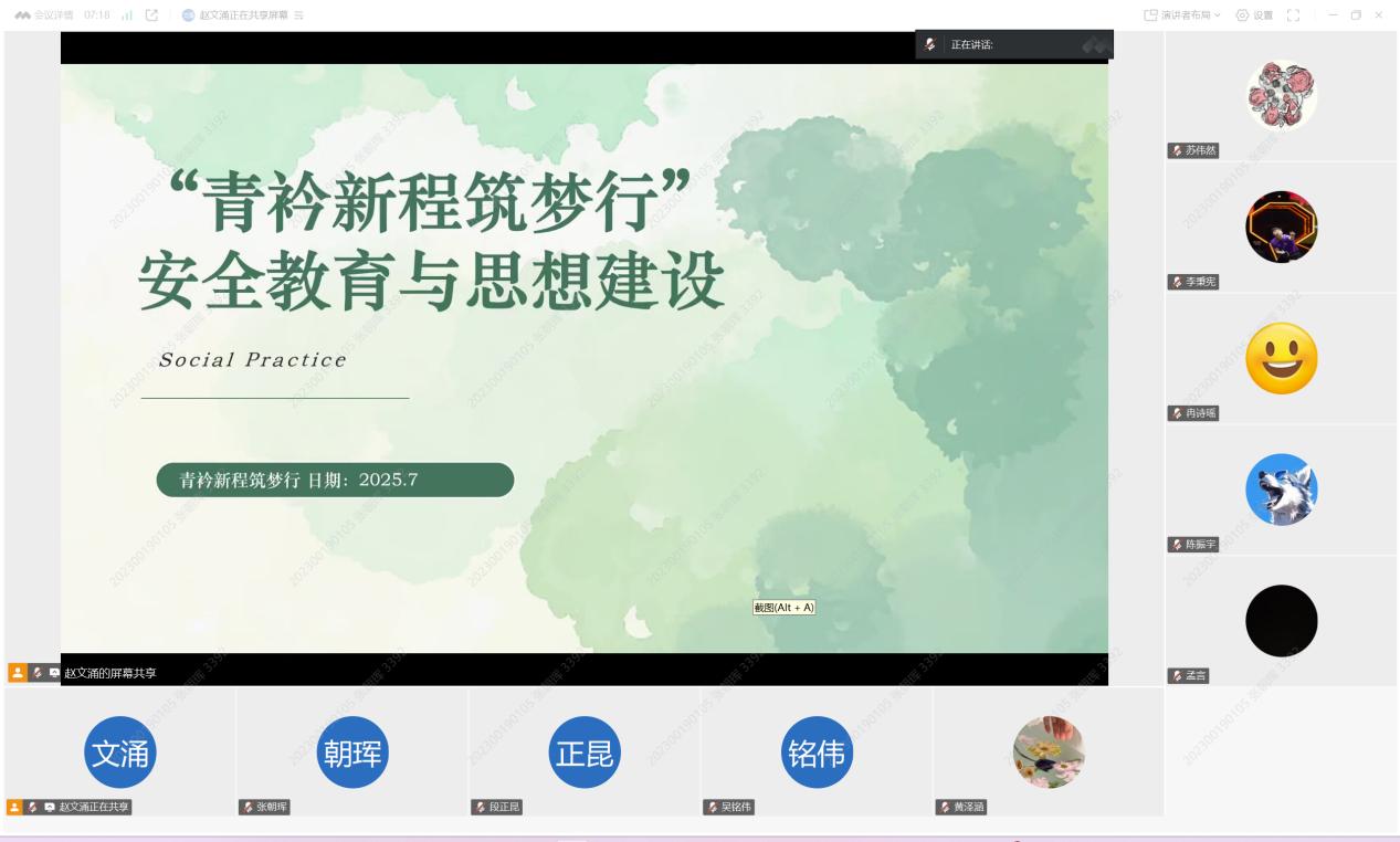 本次活動由團隊負責人趙文涌主持,社會實踐團隊全體成員參與。趙文涌首先著重強調了安全意識的重要性與必要性,他指出團隊成員要時刻牢記安全第一,并介紹了一系列安全防范措施和應急預案。團隊成員們積極參與討論,分享了自己的安全經驗和意見,共同制定了安全教育的具體措施,以確保社會實踐活動在安全保障的前提下進行。接著,趙文涌表達了對團隊的思想建設和協作能力的關注。