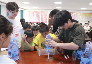 “遇強則強,遇弱則弱”來形容非牛頓流體是再好不過的了,輕輕觸碰時柔軟如絲綢,用力敲打時卻堅硬如鐵。在隊員們的指導下小朋友們反復實驗,小心翼翼地調配淀粉與水的比例,終于找到了最佳配比。他們將調配好的非牛頓流體倒入容器中,向周圍同學一起分享成功的喜悅,一起感受科學的魅力。