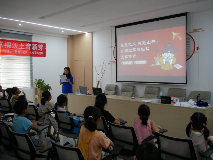 活動(dòng)現(xiàn)場(chǎng),團(tuán)隊(duì)成員以“星星之火照亮山林”為主題,結(jié)合生動(dòng)PPT,講述云南紅軍游擊隊(duì)在宜賓的戰(zhàn)斗歷程。從游擊隊(duì)員們?cè)谄D難環(huán)境中堅(jiān)持斗爭(zhēng),到巧用戰(zhàn)術(shù)抗擊敵人,一段段真實(shí)故事,將孩子們帶回烽火歲月,讓他們深刻體會(huì)革命先輩的英勇無畏與堅(jiān)定信念。