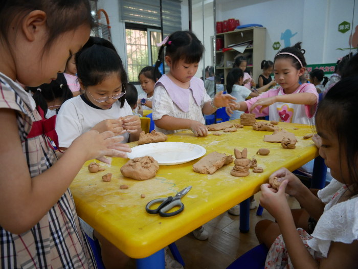 (圖為小朋友做泥塑的過程 趙巧玲攝)