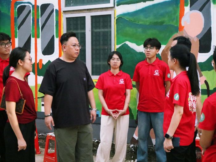 7月8日下午,數字創意學院教工黨支部書記付堯教授帶領黨員教師一行來到江頭村,看望正在開展社會實踐的實踐團成員,高度認可了大家在社會實踐中的積極表現和辛勤付出。他指出,同學們深入鄉村進行墻繪創作和非遺文化調研,為鄉村振興貢獻了青春力量,展現了當代大學生的責任與擔當。付堯教授鼓勵大家繼續以飽滿的熱情和專業的素養,將藝術與設計的力量融入鄉村建設,為鄉村文化傳承和發展注入新的活力。同時,他提醒同學們注意實踐中的安全與團隊協作,期待大家圓滿完成實踐任務,為鄉村振興賦能添彩。