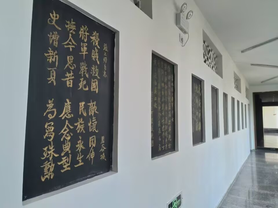 隨著腳步的深入,我們來到了掛滿書法作品的長廊。一幅幅書法作品,上面書寫著對張自忠將軍的贊頌之詞。“殺敵救國,將軍戰死,民族永生”,每一個字都飽含著對將軍英勇無畏精神的敬仰,讓我們仿佛穿越時空,看到了那個戰火紛飛的年代,張自忠將軍帶領將士們奮勇殺敵的壯烈場景。