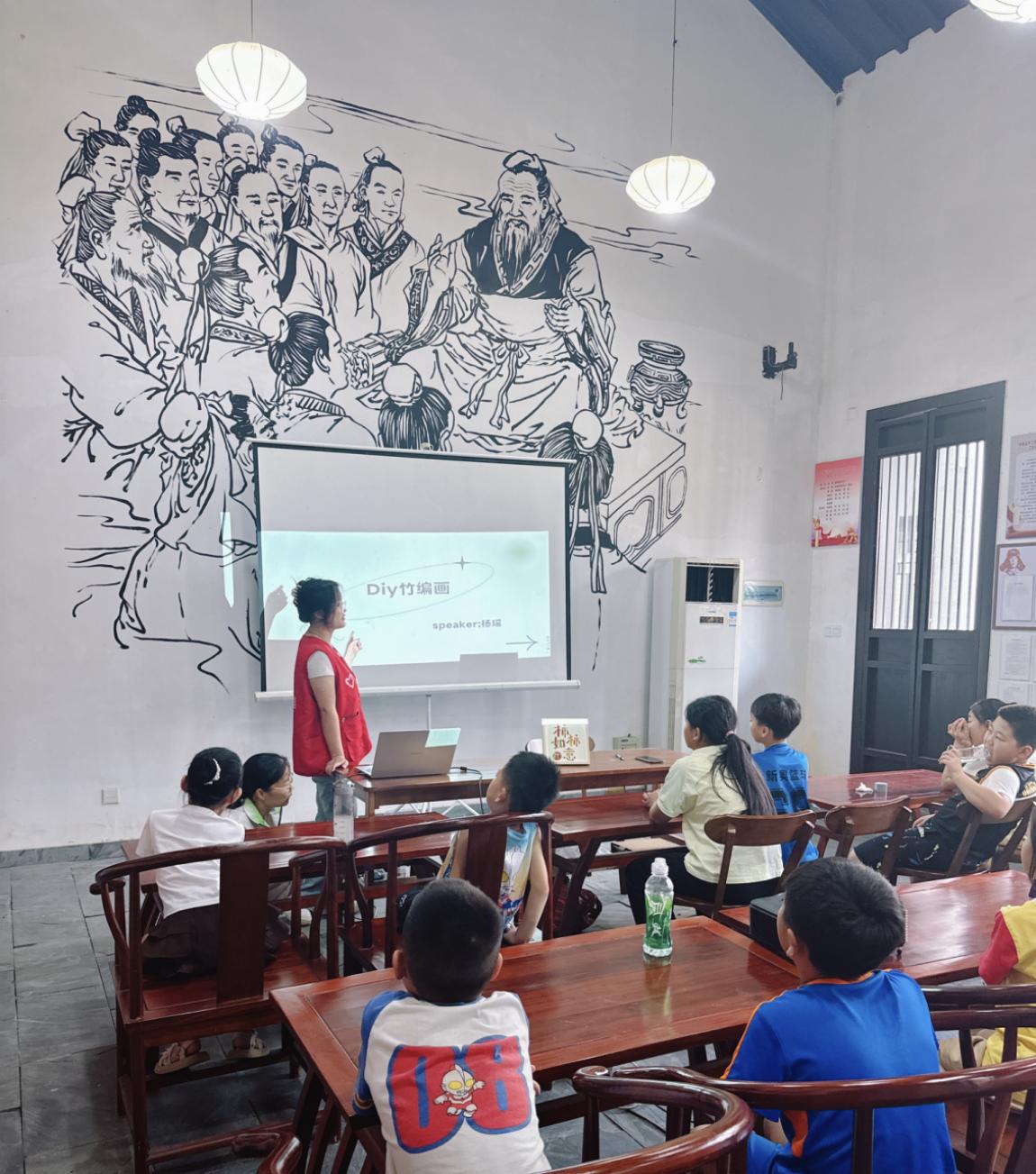 活動伊始,志愿者們通過趣味講解,向孩子們介紹了竹編藝術的歷史淵源與文化價值。從選材到編織技法,志愿者們將復雜的工藝拆解成簡單易懂的步驟,孩子們聽得入神,踴躍提問,課堂氛圍輕松活躍。“原來竹編還能做成這么漂亮的畫!”一位小朋友興奮地說道。