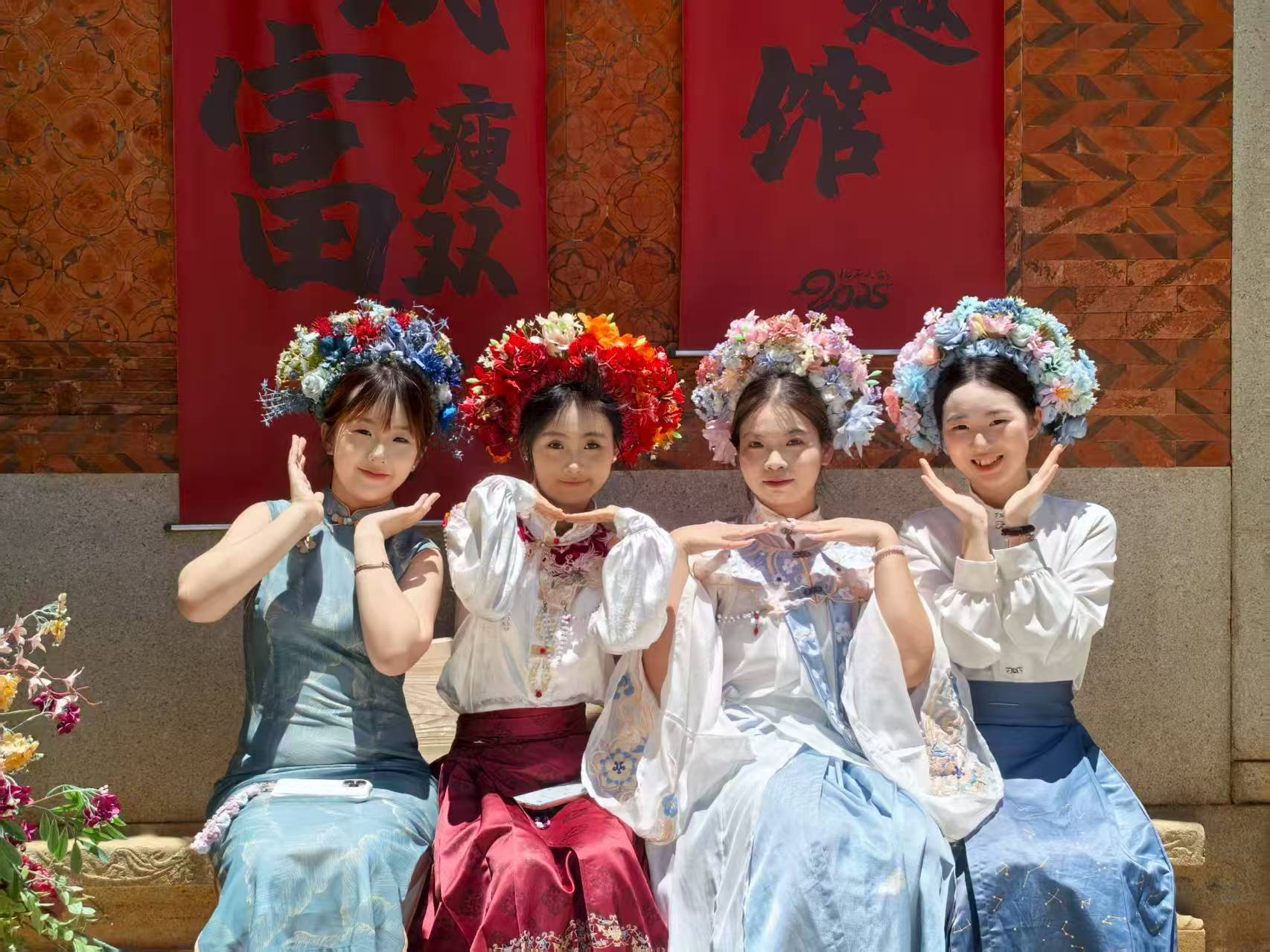 轉場梧林村落,撲面而來的南洋風情揭開了海絲的人文敘事。為了解梧林傳統習俗,隊員們首先學習了簪花技術,體驗了當地的文化服飾。