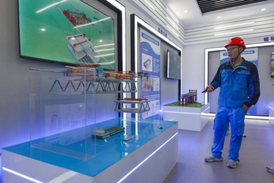 在中交二航局獅子洋通道項目T08標相關工程負責人帶領下,實踐隊員們走進智慧展廳,通過實物沙盤、施工視頻與技術模型,系統了解項目工程從設計構思到技術攻關的全流程。從“精心設計、精細管理、精益施工、精準創新、精品團隊”的管理理念,到每一項世界紀錄背后的材料革新與結構優化,為實踐隊隊員搭建起一座連接“宏觀工程與微觀技術”的認知橋梁。